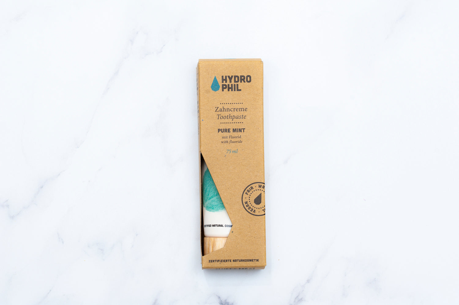 Our tubes of the Hydrophil Pure Mint Toothpaste bear a Natural Cosmetics seal in accordance with the Natural Cosmetics Standard which always keeps your toothpaste hygienic when it is closed.